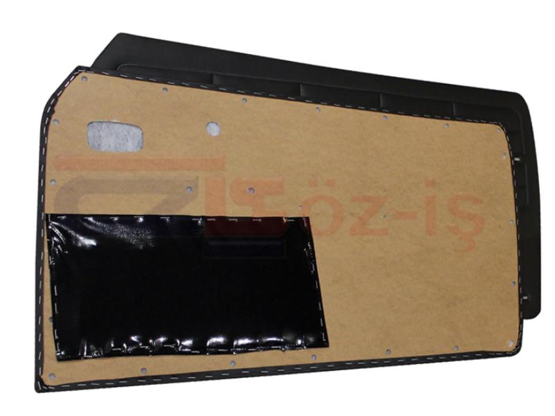 All holes of clips, windows, and door handles are on the wooden board. There are no holes in the vinyl covering.