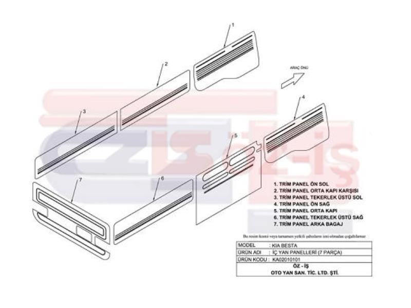 KIA BESTA BUS INTERIOR SIDE PANEL SET 5 PCS